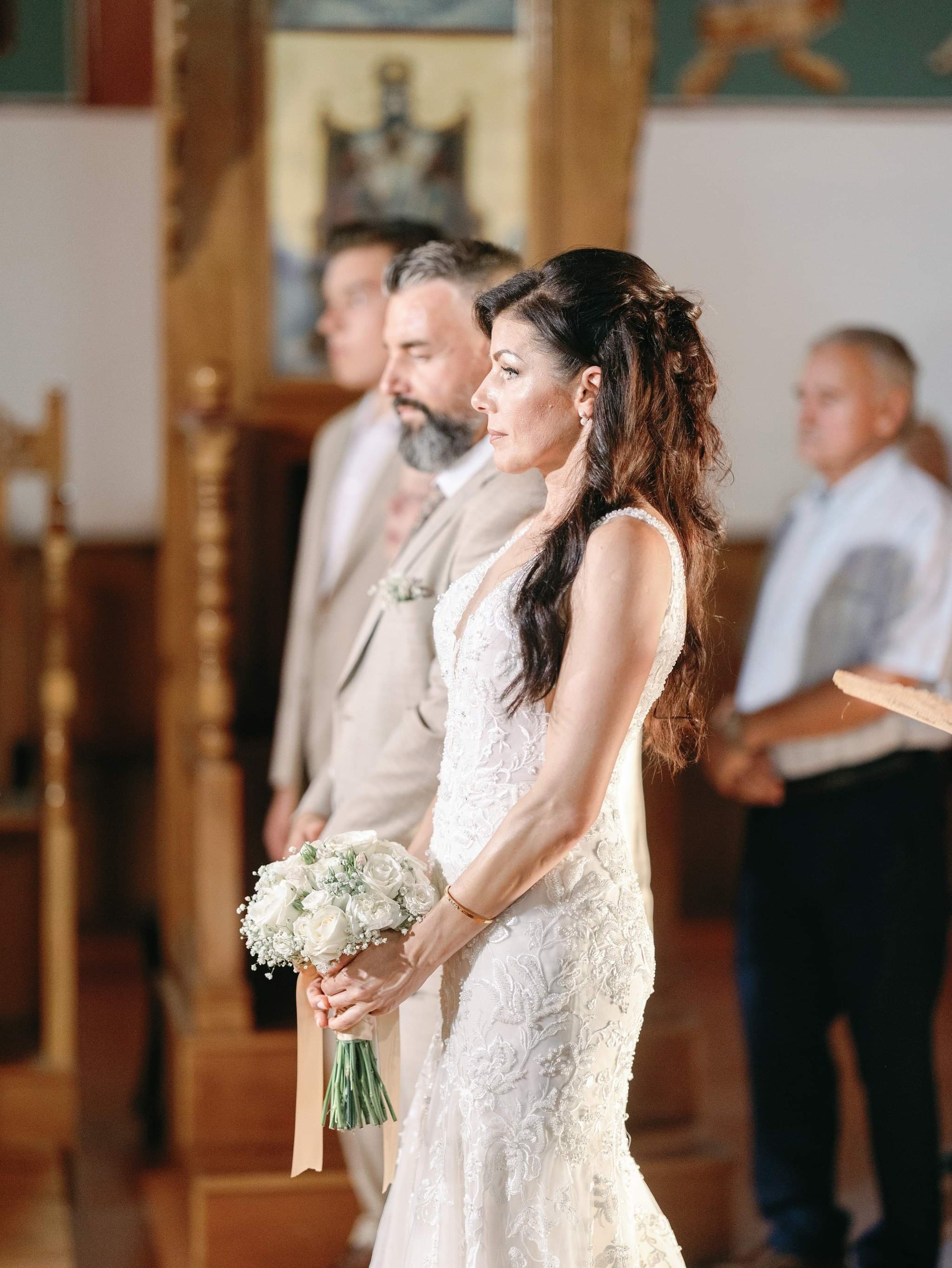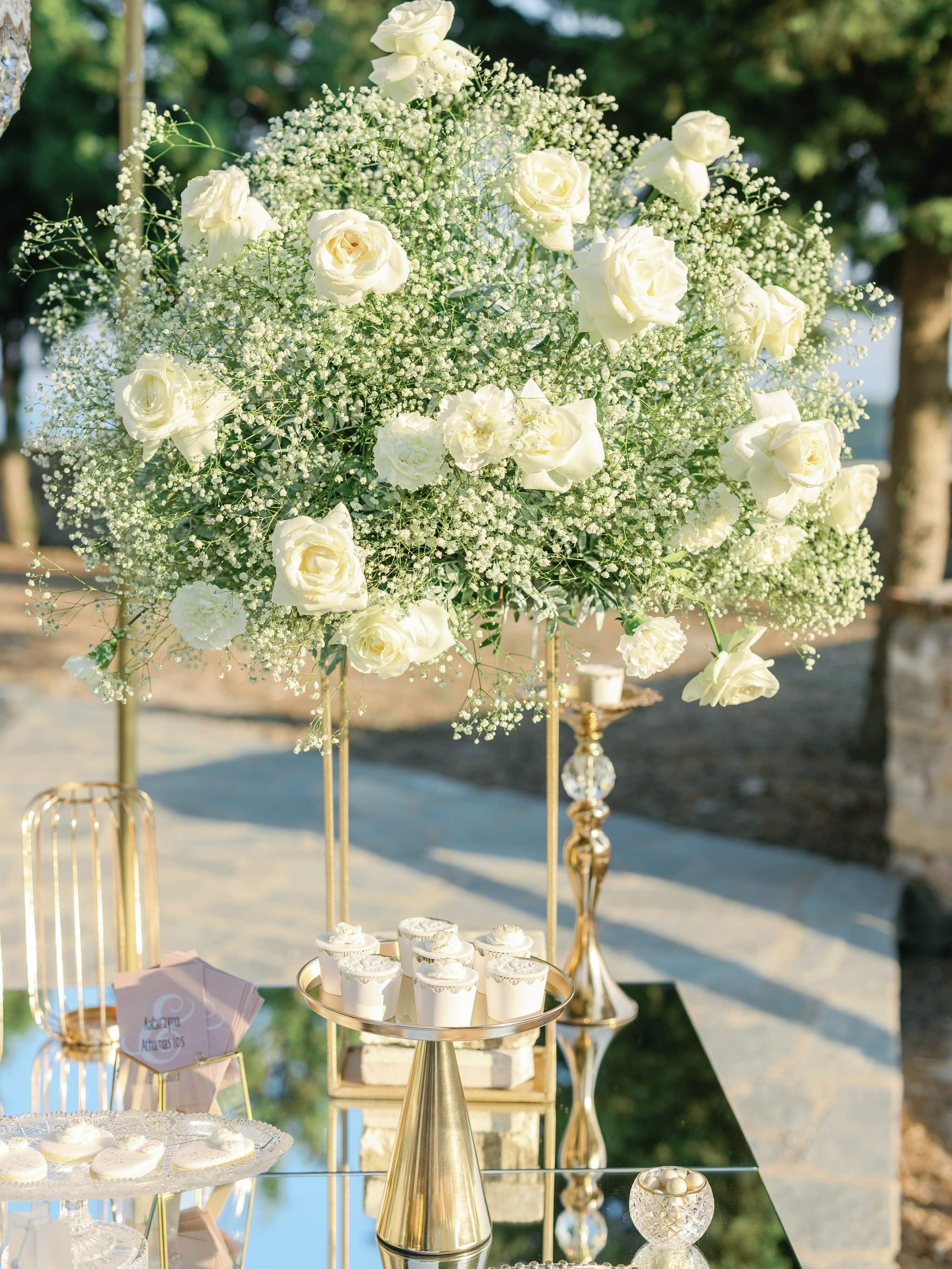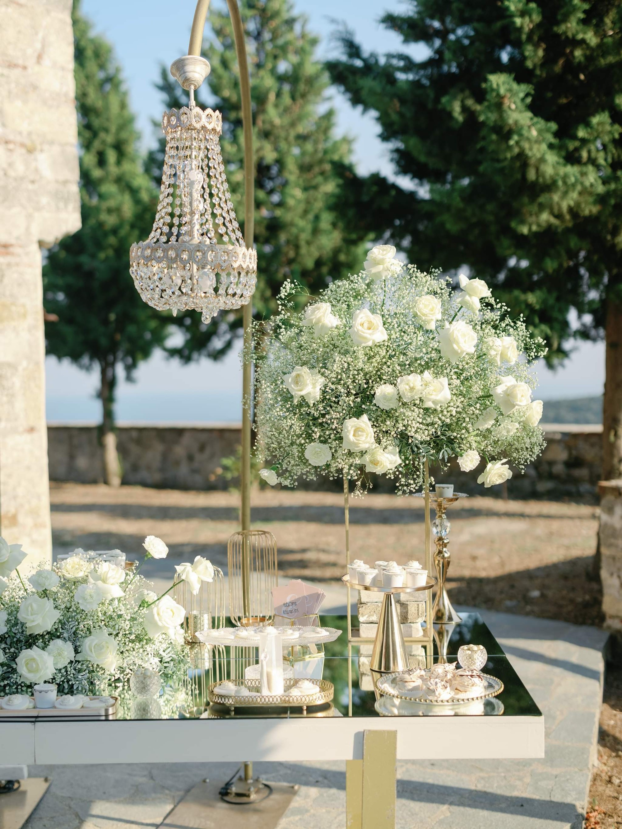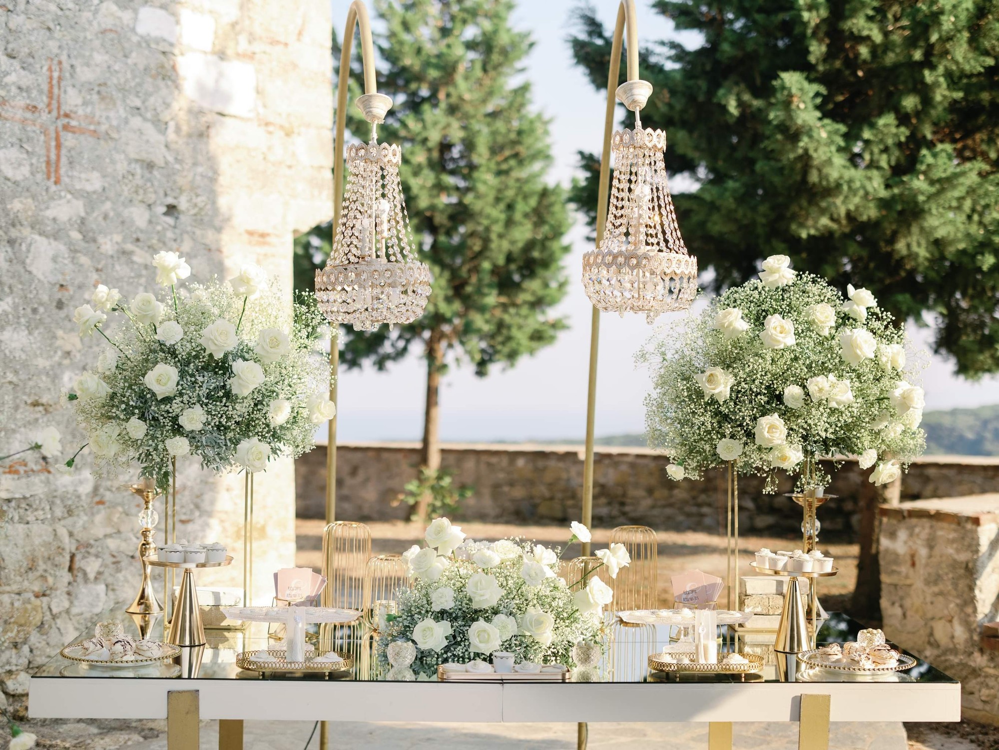 Athanasios and Katerina chose white roses and baby's breath for the most beautiful moment of their lives. An incredible scene was set up on the beach with lights on the trees. The party lasted until morning.