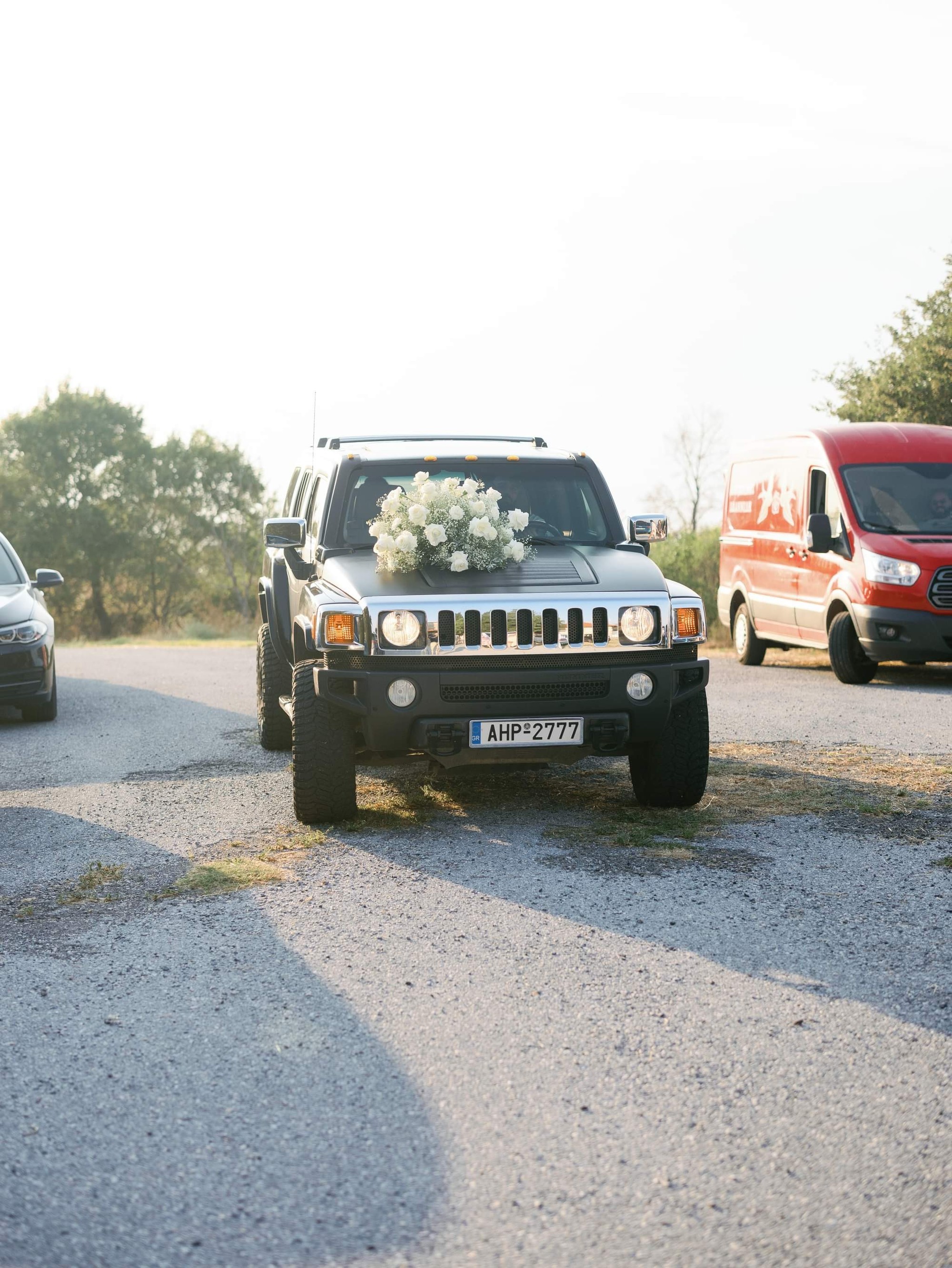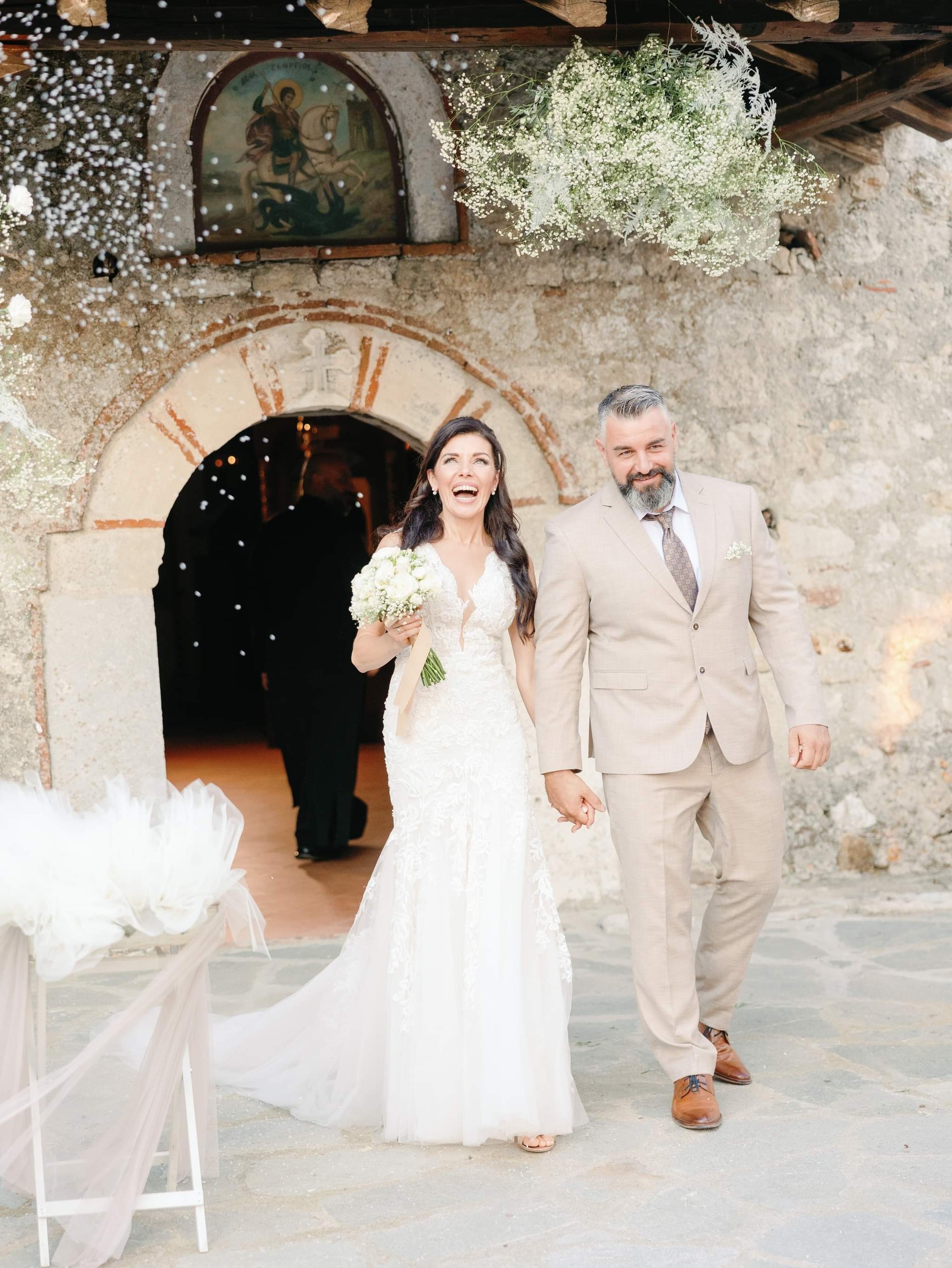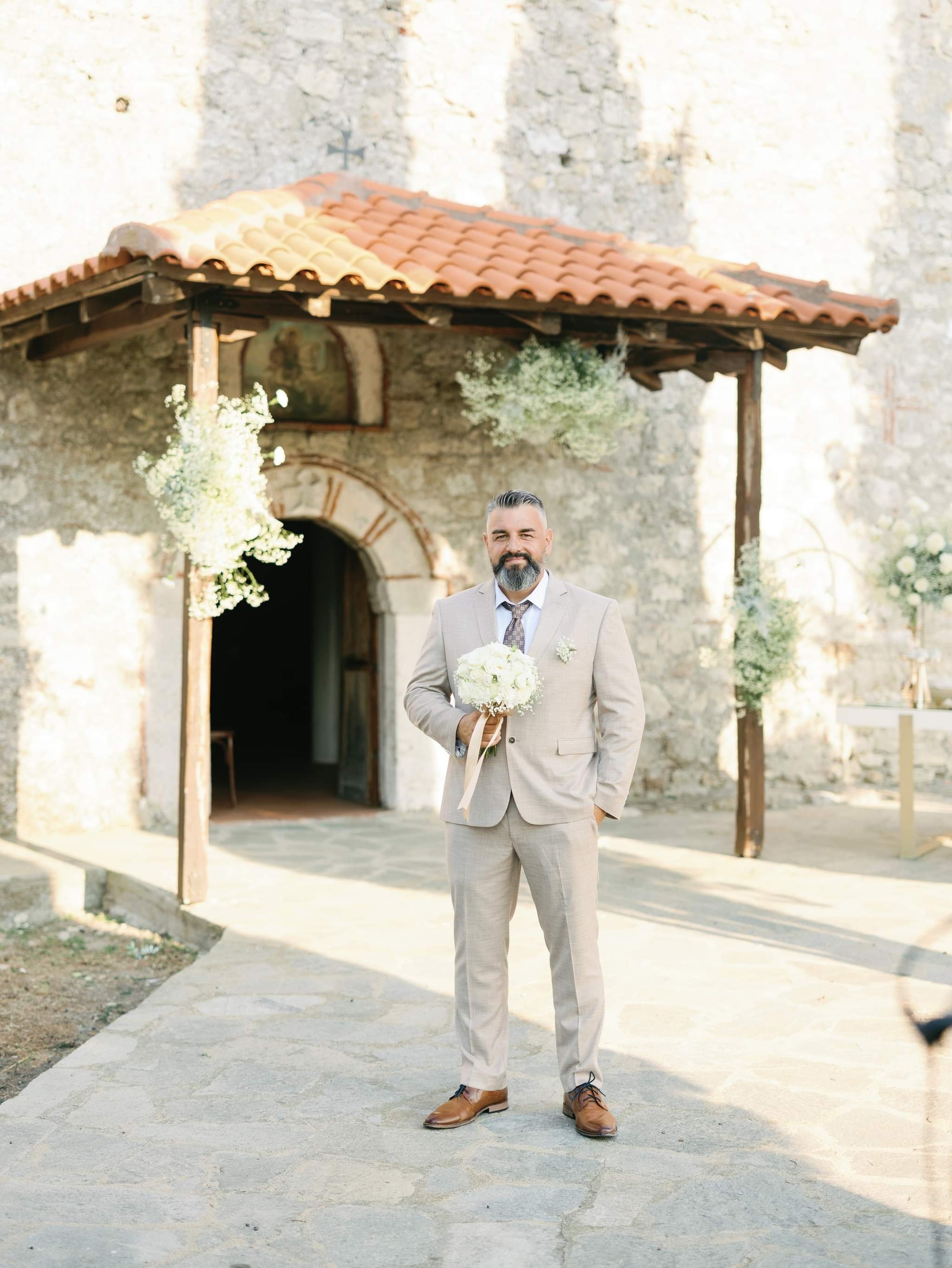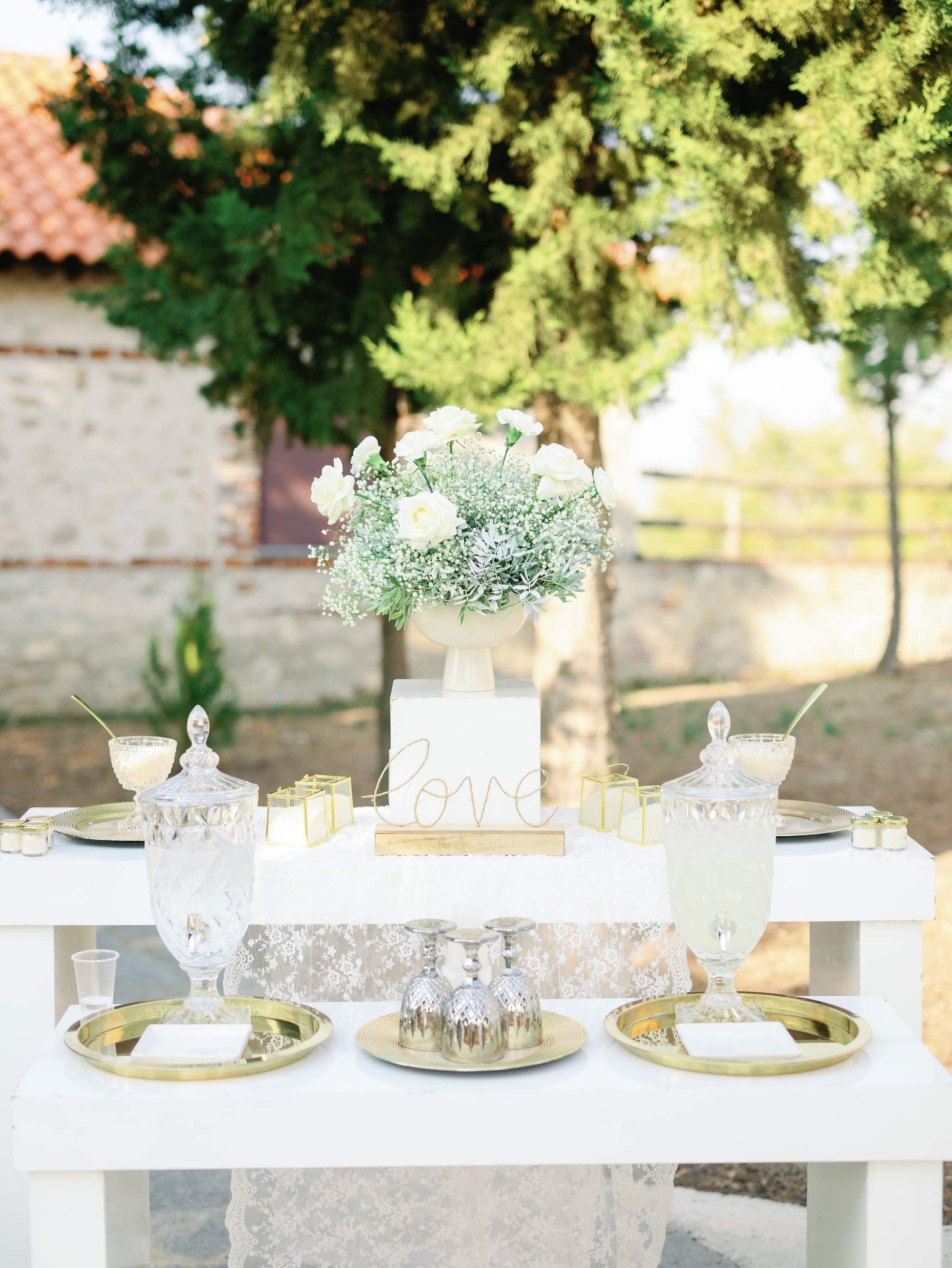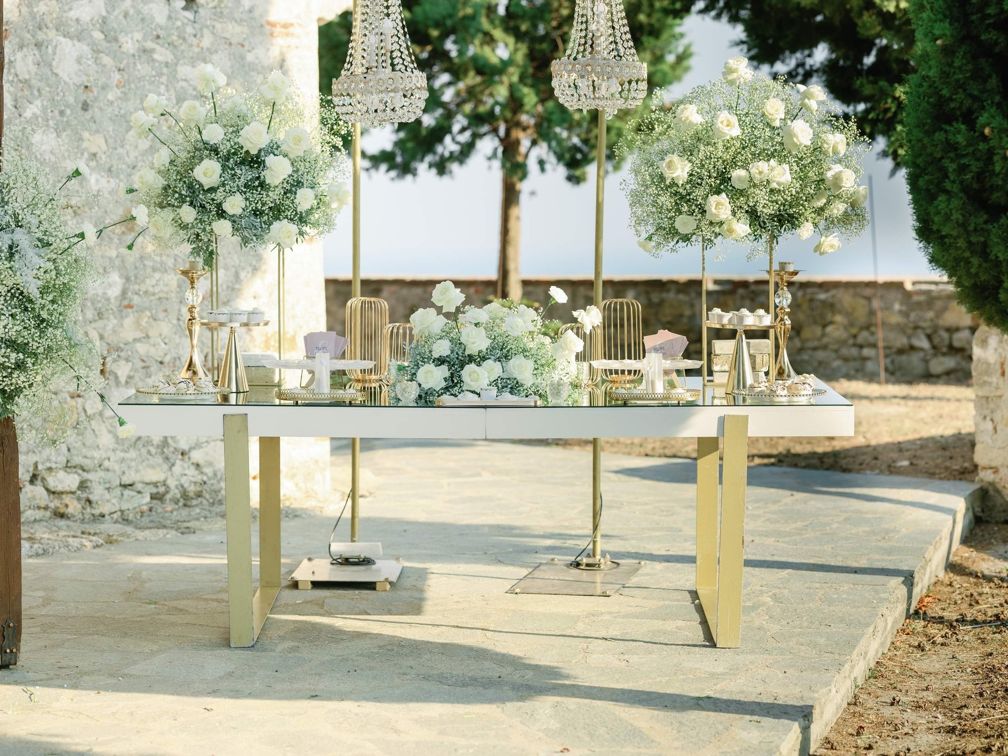 Athanasios and Katerina chose white roses and baby's breath for the most beautiful moment of their lives. An incredible scene was set up on the beach with lights on the trees. The party lasted until morning.