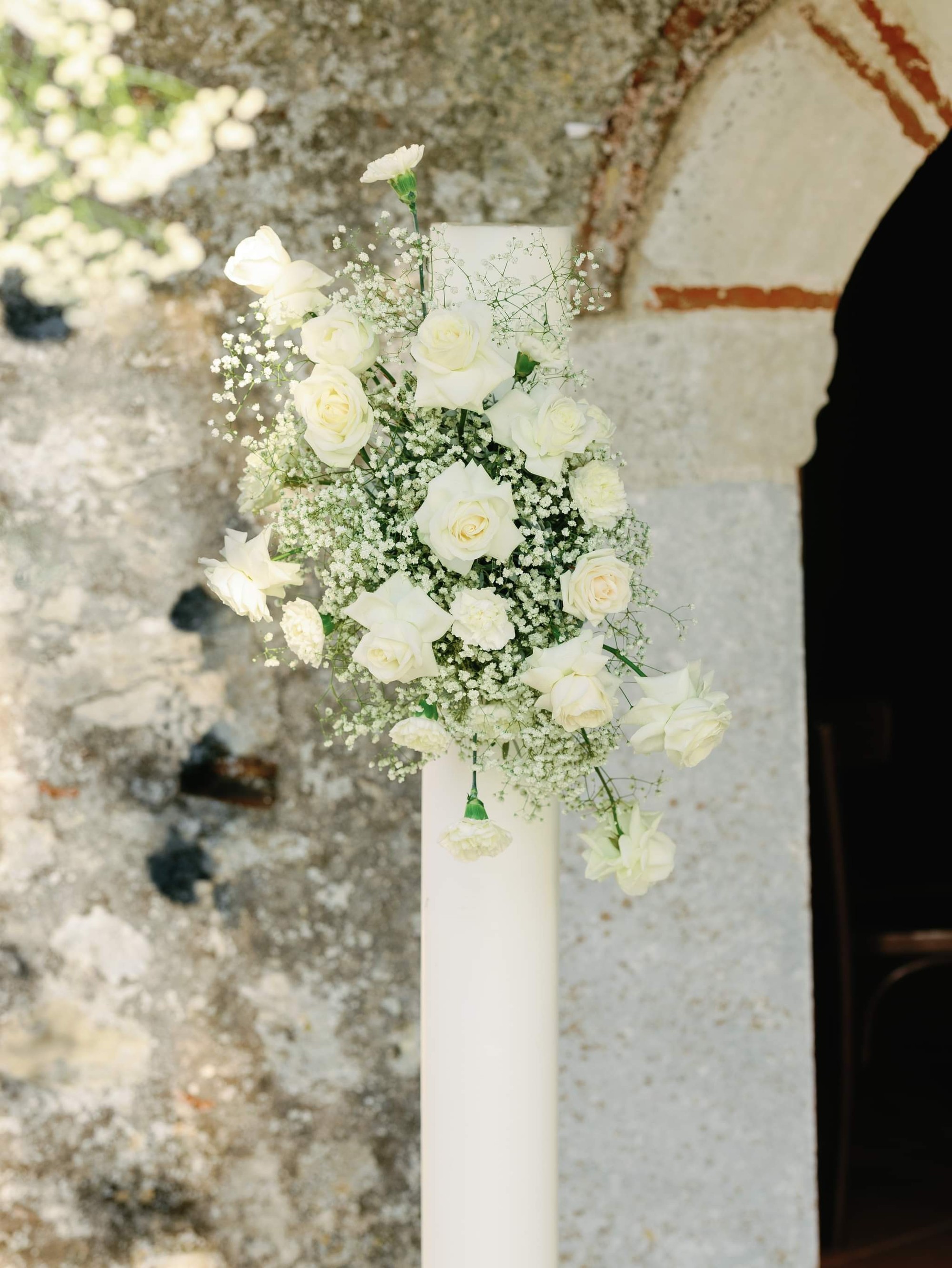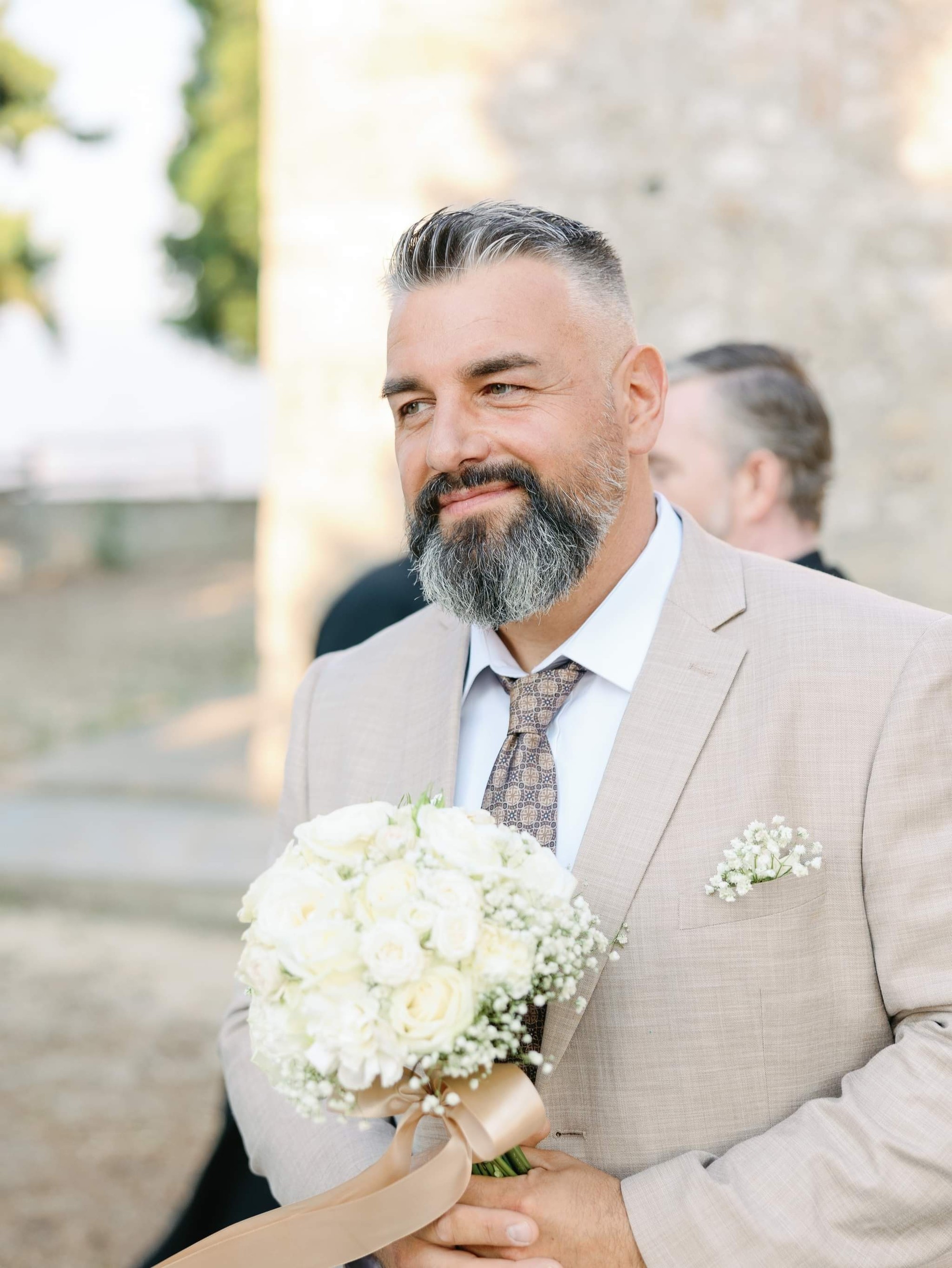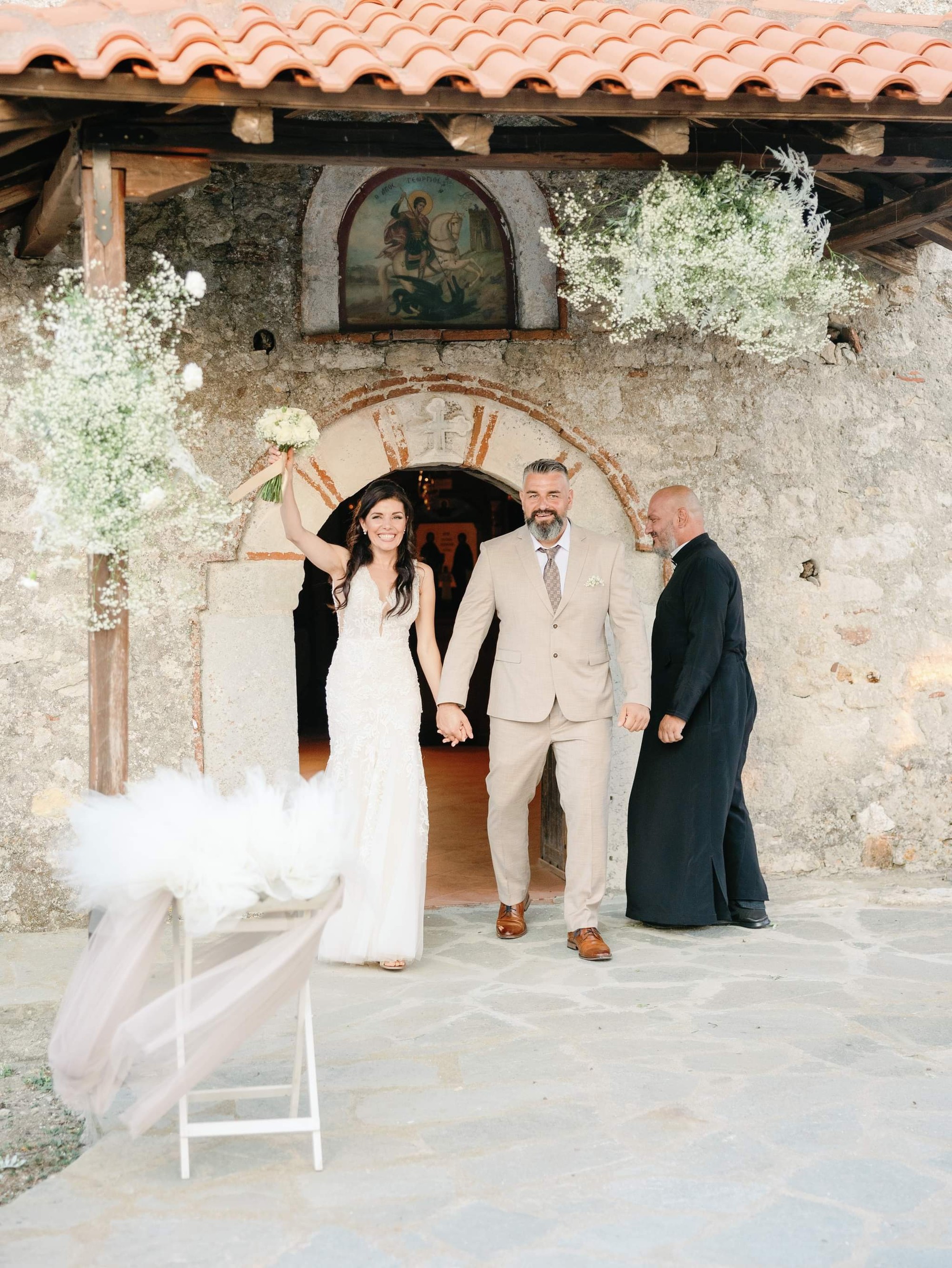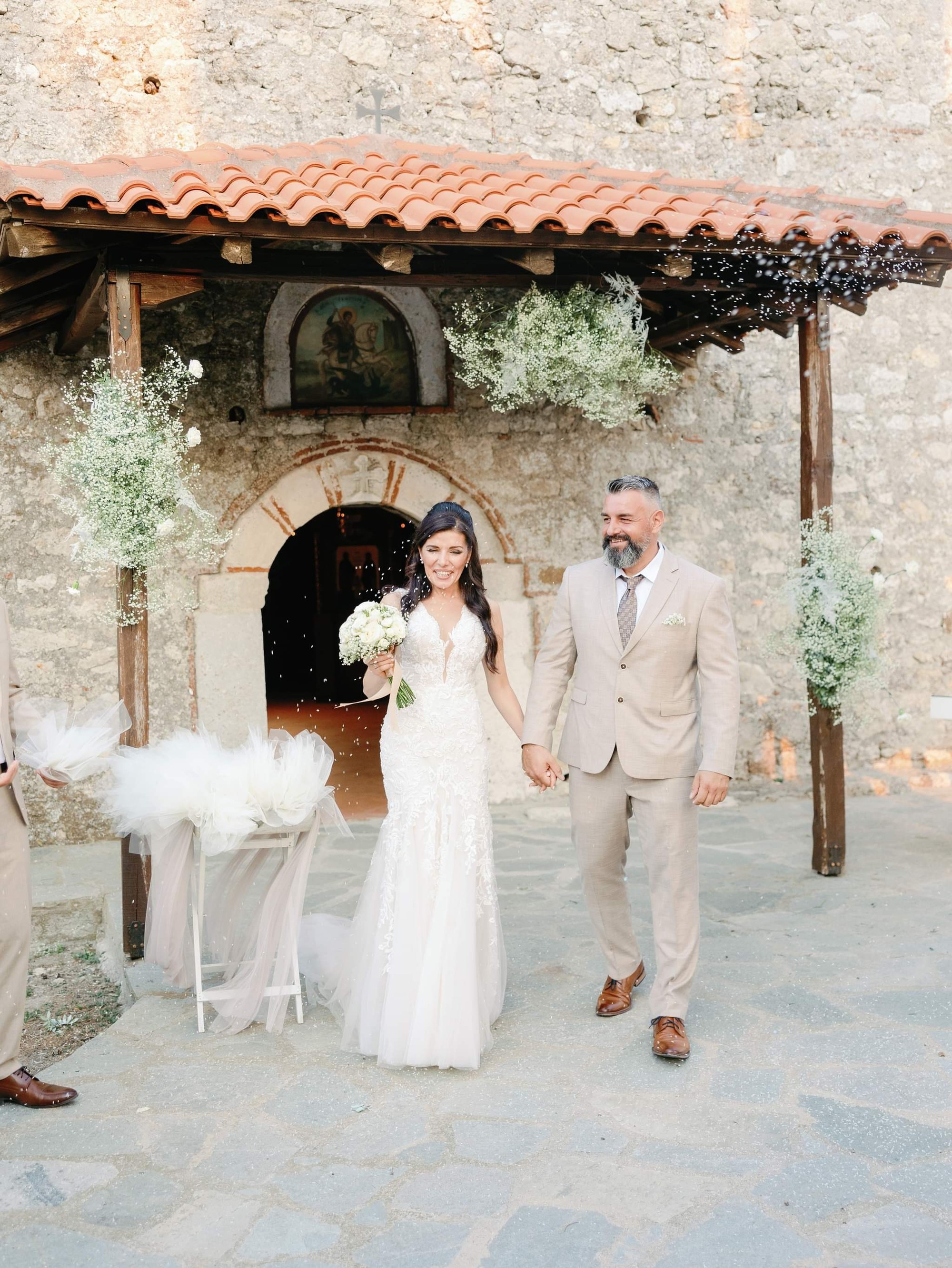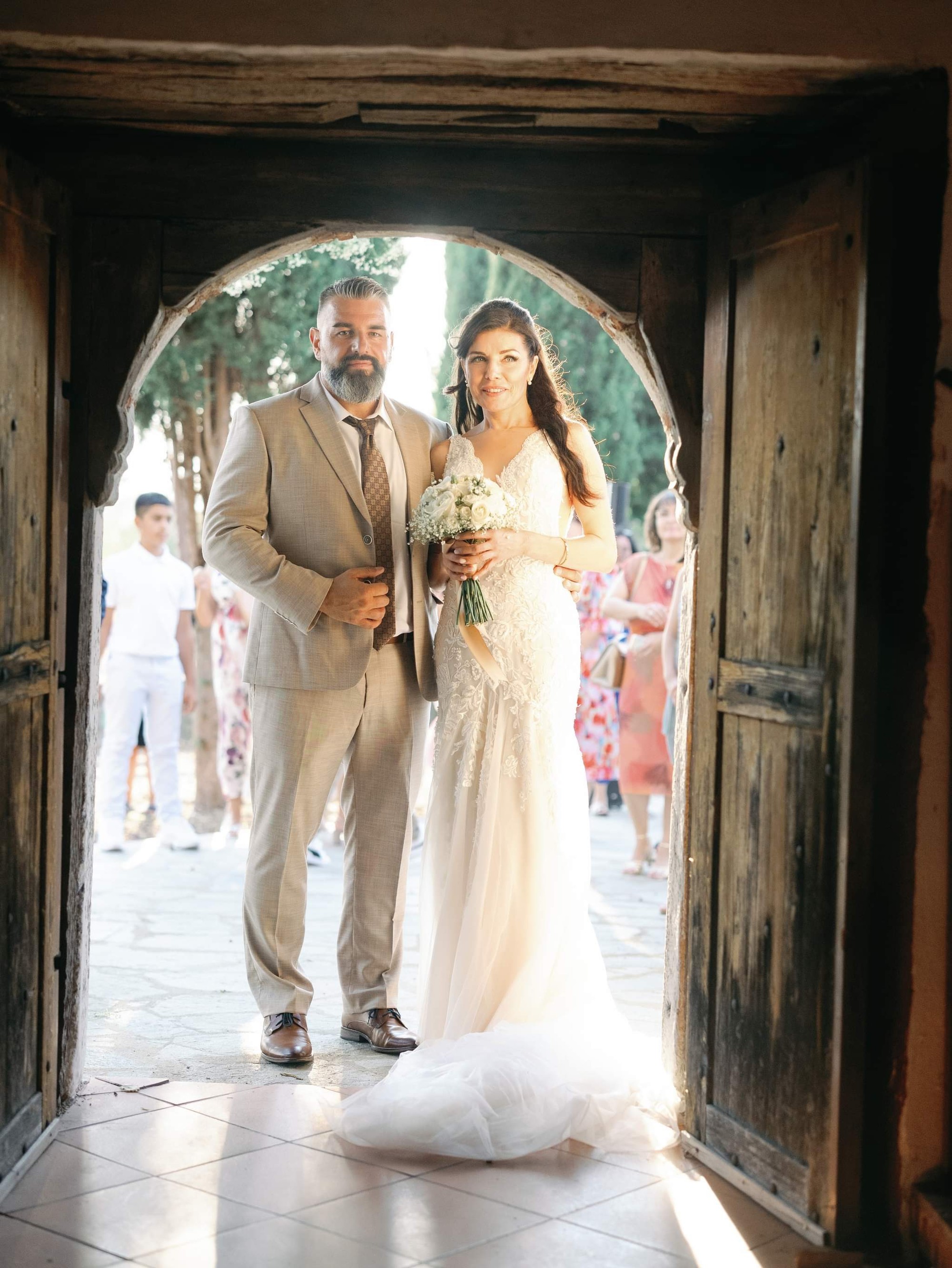 Athanasios and Katerina chose white roses and baby's breath for the most beautiful moment of their lives. An incredible scene was set up on the beach with lights on the trees. The party lasted until morning.